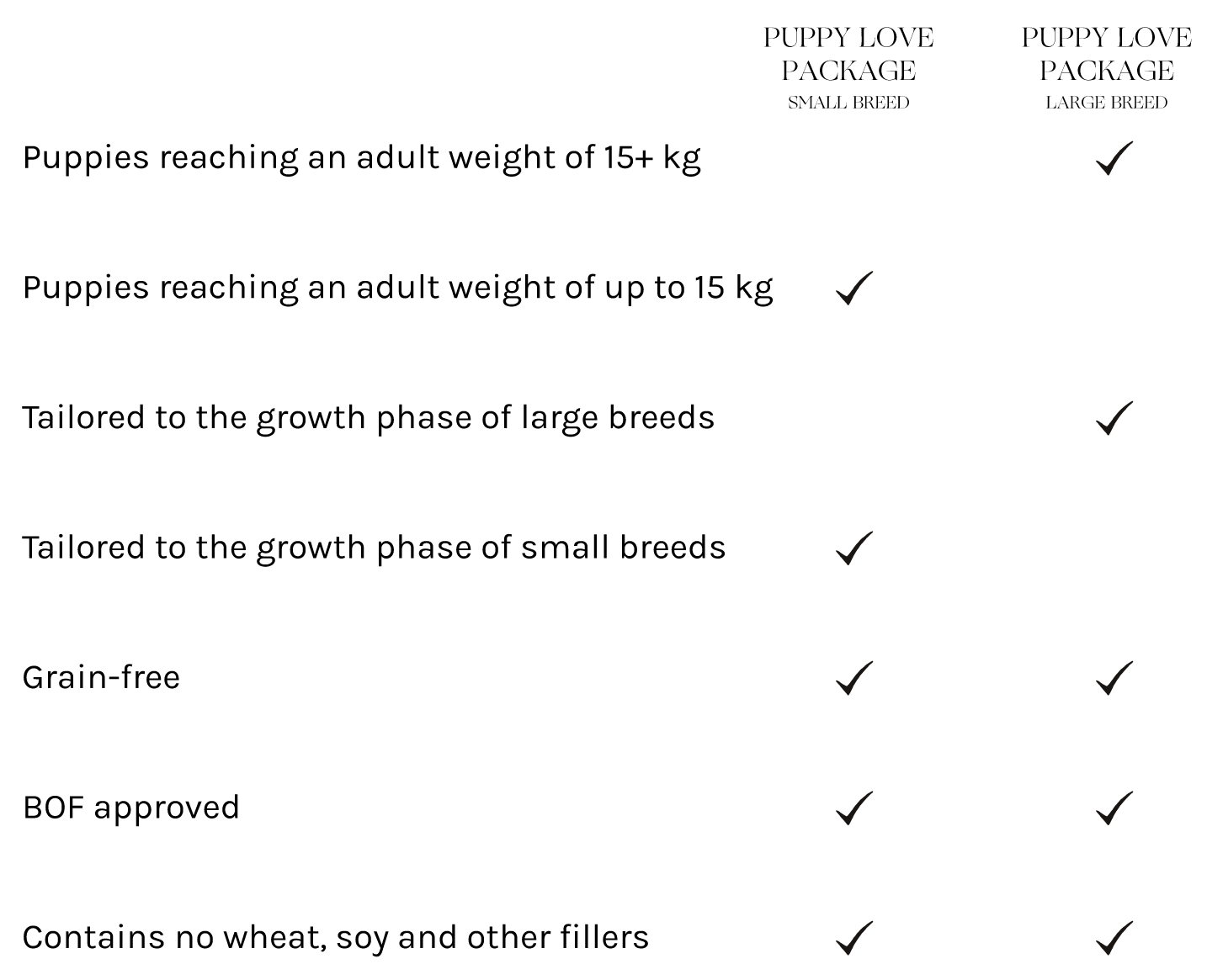 Our dedicated PUPPY LOVE PACKAGE is the perfect introduction to the best you can serve your puppy – a caring kit containing all you need for your early days together.